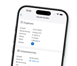 Ob im Büro oder direkt auf der Baustelle – mit der Handwerker Software hast du überall das Werkzeug, das du wirklich brauchst. Das Beste: Alle Daten werden in Echtzeit zwischen Büro und App synchronisiert. So ist dein ganzes Team jederzeit auf dem aktuellen Stand – ohne Zettelchaos und doppelte Arbeit.