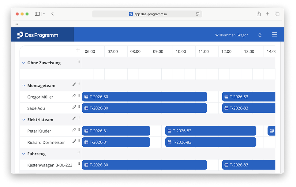 Wie funktioniert die Teamplanung im Programm?