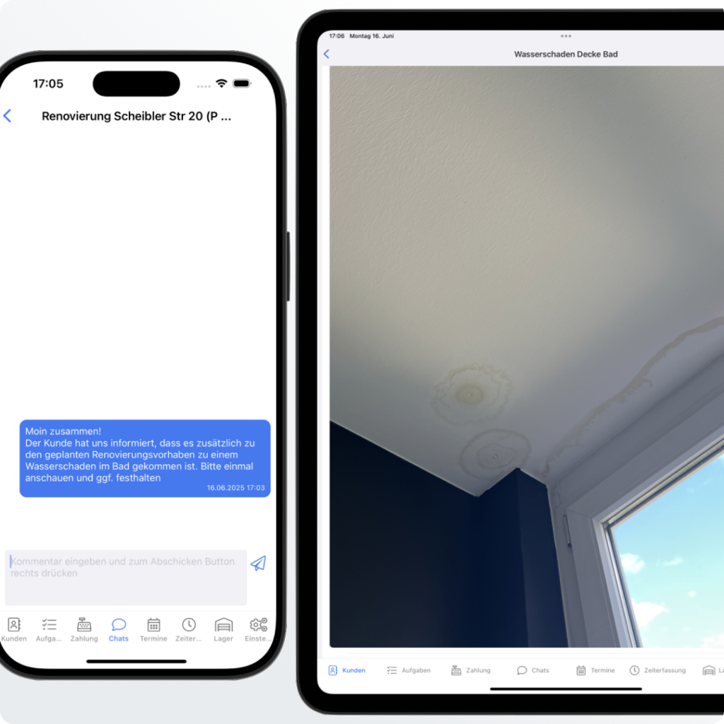 Mit unserer Handwerker App koordinierst du dein Team schnell, mobil und übersichtlich – egal ob im Büro oder unterwegs.