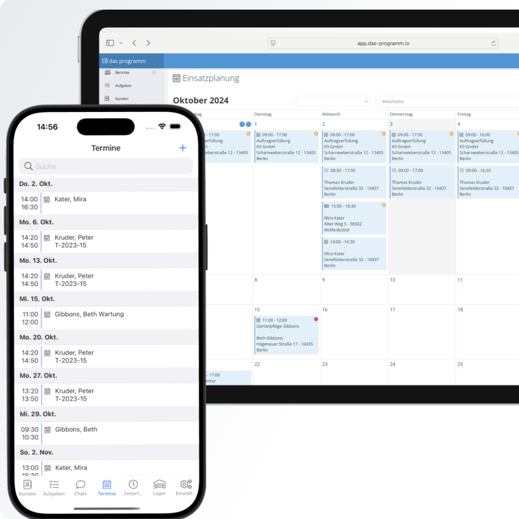 direkt auf dem Smartphone. Alles wird automatisch ins Büro übertragen – so arbeitet dein Team mobil, transparent und ohne Zettelchaos.