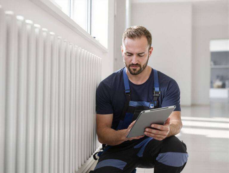 Morgens sortierst du Zettel mit Aufträgen und handgeschriebene Aufmaße für eine Badsanierung. Ein Kunde ruft an und will wissen, ob seine Heizung noch vor dem Wochenende fertig wird.