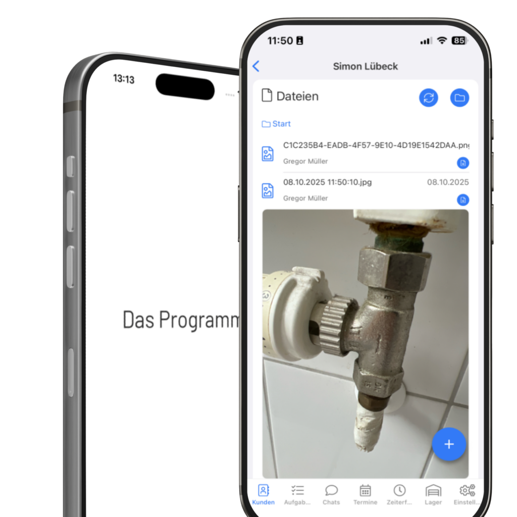 Egal ob Rohrverlegung, Heizungswartung oder Klimainstallation – mit der SHK App von das Programm hat dein Team alles direkt auf dem Smartphone. Keine Zettelwirtschaft, keine verstreuten Fotos – alle Infos fließen an einem Ort zusammen. Die App ist sowohl für Android als auch iOS verfügbar und damit für dein gesamtes Team nutzbar.
