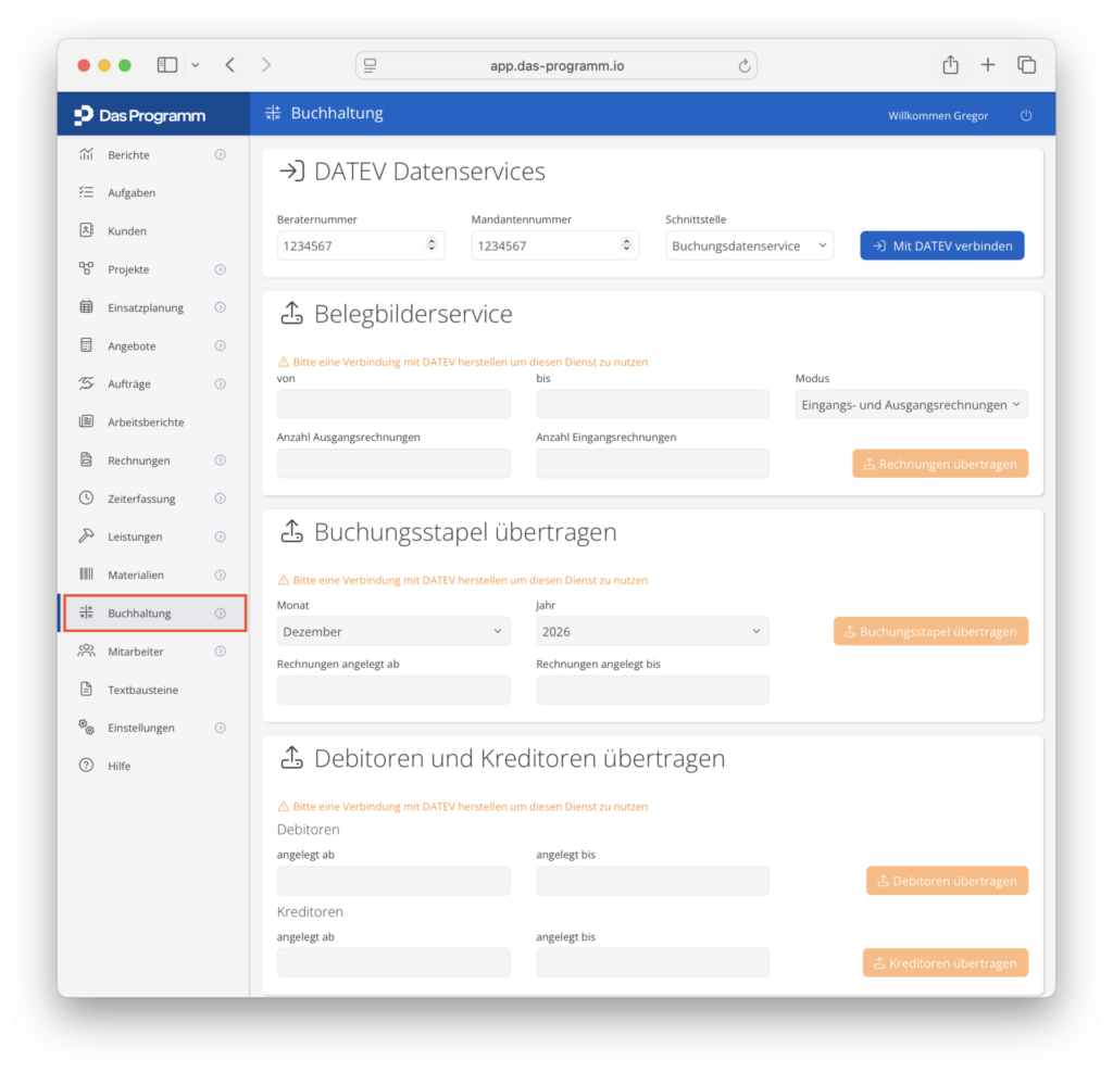 DATEV Schnittstelle im Programm