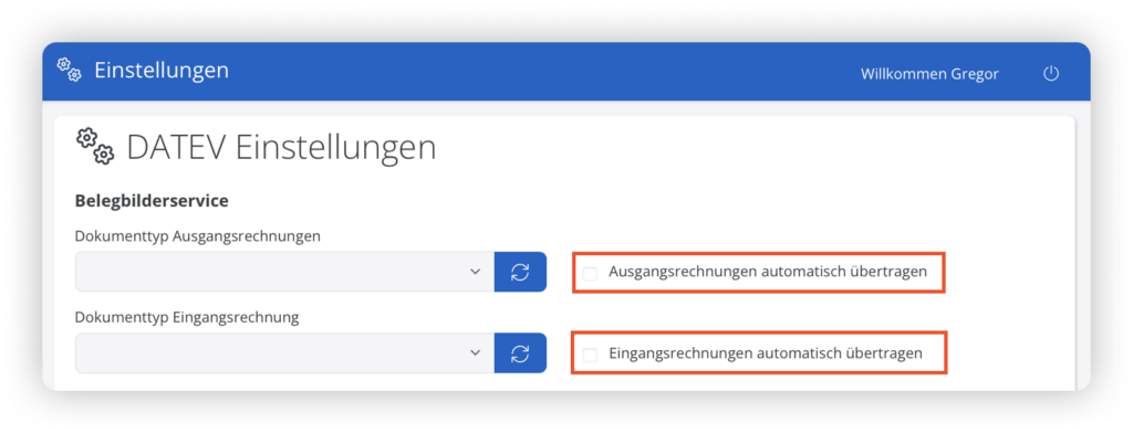 Für den Belegbildservice sind zwei Einstellungen wichtig: